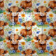 Hochlandkühe in freilebenden Blume Stoff