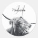 Hochlandkuhportrait Initialmonogramm Schwarz-weiß Runder Aufkleber