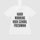 Dieses Textdesign mit dem Satz "Hard Working High School Freshman" ist perfekt für jeden Schulfreund, der hart arbeitet.