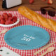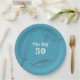 Party Teller für die Tiefsee / Salzwasser Fischer ab 50, oder jedes Alter. Passen Sie den Text in der Mitte der blaue Teller, die mit Fisch und einem Angelpol / Stab und Rollen dekoriert sind.