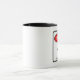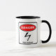 Gefahr - Hochspannung - weiße Tasse mit rotem, weißem und schwarzem Warnzeichenartentwurf für den "speziellen" Kaffee.