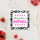 Leider ist beim Bestellvorgang nicht die Größe angegeben, zumindest habe ich es nicht gesehen. Der Name "Duschen"-Servietten ist etwas seltsam :-) Aber man kann aus verschiedenen Designs auswählen und es sieht ganz nett aus. Ich würde mir aber noch viel mehr verschiedene Farben und Muster wünschen! Insgesamt eine nette Idee für ein personalisiertes Accessoire zu allen möglichen Feiern. Der Druck ist OK, er ist nur ganz leicht unscharf.
