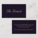 Diese elegante lila, schwarz getönte Gästekarte für Hochzeitsgäste kann für zusätzliche Informationen verwendet werden, die Ihre Gäste vielleicht wissen müssen. Dazu gehören Fahrpläne, Informationen zum Empfang, Hotelinformationen oder einfach eine Hochzeitswebsite, auf der Ihre Gäste weitere Informationen finden können.