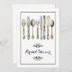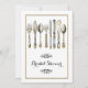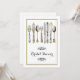 Verwöhnen Sie die Braut mit einem schönen, altmodischen High-Tee-Brautparty. DESIGN - Eine Illustration altmodischer Messer, Gabel und Löffel in Imitaten Silber und Gold haben faszinierende Rose, Arallien und Gräser, die in sie eingeätzt wurden. Ein stilvoller Blumenwirl in schwarzen Rahmen eine goldfarbene Vorlage, die auf den Anzug Ihrer besonderen Hochzeit Probe, Verlobung oder Jahrestag angepasst werden kann.