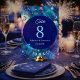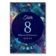 Fügen Sie Ihrem Empfang eine Touch kosmischen Charmes mit dieser Celestial Midnight Moon Phases Chic Wedding Tischnummer hinzu. Set vor einem reichen, blauen und aquamarinen Galaxiehang, präsentiert das Design elegante Mondphasen, funkelnde Sterne und eine traumhafte Himmelsästhetik. Diese Tischnummer ist perfekt für moderne Hochzeitsfeiern, mystische oder sternenförmige Nächte geeignet und verbindet Romantik und Kosmos mit Eleganz. Stilvolles und funktionelles Detail, das die Gäste zu ihren Tischen führt, während Sie Ihre himmlische Hochzeitsdekoration aufwerten.