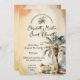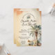 Elegante Aquareller Hochzeitsfeiern in stimmungsvollen Vintagen Tönen mit einer großen Palme, Schild und Sonnenbrille.