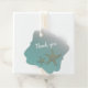 Hochzeitsthema am Strand, mit Grafik von zwei Seestern auf einem Aquawasser-Hintergrund. Die Rückseite des Anhängers ist in einem Strand-Sand-Look getan. Personalisieren Sie den Text, vorne und hinten, um Ihre Hochzeitsbedürfnisse zu Anzug.