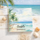 Ein tropischer Strand, Wellen und Palmen, Aquarell. Personalisieren Sie den Namen Ihrer Brautjungfrau und fügen Sie ihn hinzu. Schwarzes handgeschriebenes Stilskript.