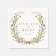 Ideal für Ihre botanische Hochzeitsfeier, präsentieren diese herrlichen Papierservietten einen wunderschönen und farbenfrohen Kranz auf der Wiese Wildblume. Mit den Namen der Braut und des Bräutigams bringen diese Servietten eine elegante Touch in Ihren Tisch.