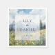 Diese eleganten Papiertücher für die Hochzeit mit einem Aquarell einer Bergwildblumenwiese können mit moderner Typografie und Ihren Informationen angepasst werden. Design von Thisisnotme©