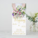 Hochzeitseinladung - Braut mit bunten Hochzeitsbukett von Rose. Name, Ort und Datum können in der Vorlage angepasst werden. Foto Beatriz Perez Moya