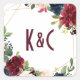 Hochzeit Burgundy & Navy Floral Geometric Quadratischer Aufkleber