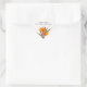 Herzförmige Dankeschön-Aufkleber für Gastgeschenke Hochzeiten mit Orangenvogel von paradiesischen Blume Design. Fügen Sie eine kurze Nachricht hinzu, um den Gästen zu danken, dass sie auf der Hochzeit in dunkelblau waren, gedruckte Texte auf weißem Hintergrund. Lass den Wortlaut nicht an Kanten!