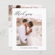 Hochzeit Dankeschön Karten, die ein Foto Bilder und Text auf der Vorder- und Rückseite haben. Die Dankeschön-Karten enthalten eine moderne, handgeschriebene, kursive Schriftzeichen-Typografie, die elegant, einfach und modern nach einem minimalistischen einfachen Hochzeitstag-Fest zu verwenden sind.