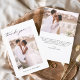 Hochzeit Dankeschön Karten, die ein Foto Bilder und Text auf der Vorder- und Rückseite haben. Die Dankeschön-Karten enthalten eine moderne, handgeschriebene, kursive Schriftzeichen-Typografie, die elegant, einfach und modern nach einem minimalistischen einfachen Hochzeitstag-Fest zu verwenden sind.