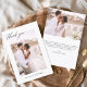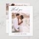 Hochzeit Dankeschön Karten, die ein Foto Bilder und Text auf der Vorder- und Rückseite haben. Die Dankeschön-Karten enthalten eine moderne, handgeschriebene, kursive Schriftzeichen-Typografie, die elegant, einfach und modern nach einem minimalistischen einfachen Hochzeitstag-Fest zu verwenden sind.