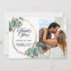 Suchen Sie ein Foto Hochzeit danke Ihnen Karte? Denken Sie an dieses Single Foto Dankeschön-Karte mit schicken Skripttexten-Design mit Eukalyptus und geometrischen Goldrahmen