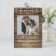 Ihr Foto auf der Vorderseite ist mit einem rustikalen, landschaftlichen, braunen, verwitterten Holzputz-Hintergrund und weich gelben Glühkerzen Lichter, zusammen mit dem Titel von LIEBE & DANKS und Ihrem Hochzeitstag in einem Land Western handgedruckt Schriftart und Ihren Namen in einem groben Bürstenskript-Schriftart. Auf der Kartenrückseite befindet sich ein weiteres Foto und es ist möglich, eine allgemeine Danksagung einzugeben (oder den Beispieltext zu löschen, um für persönliche handgeschriebene Dankeschön-Noten leer verlassen). FOTO TIPP: Wählen Sie vor dem Hochladen ein Foto mit dem Thema in der Mitte und/oder schneiden Sie es auf eine quadratische Form vor. Kontaktieren Sie den Designer über den Zazzle Chat oder makeitaboutyoustore@gmail.com , wenn Sie möchten, dass das Design verändert oder koordinierende Elemente gewollt werden.