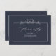 Einführung der Navy Blue Floral Border Monogram Wedding RSVP! Diese moderne Hochzeitskarte verfügt über eine wunderschöne, handgezeichnete, blumenlinienförmige Monografie mit handgeschriebenen Schriftzeichen für eine einzigartige und elegante Touch. Ideal für alle Frühlings- und Sommerschulen, wird diese Einladung Ihre Gäste begeistern. Das elegante und schlichte Design ist ideal für Paare, die ein elegantes und stilvolles Ambiente gewollt haben. Auf hochwertigen Kartenvorräten gedruckt, wird diese Einladung sicher eine Erklärung abgeben. Dies ist ein neues Design, daher kontaktieren Sie bitte Designer für passende Produkte, um die Suite zu vervollständigen, ODER für Farbvarianten dieses Designs. Copyright Anastasia Surridge für Elegant Invites, alle Rechte vorbehalten.