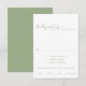 Die Hochzeitskarte RSVP zeigt ein ausgeklügeltes schlängelgrünes Schriftzeichen-Design. Die elegante Karte präsentiert die Phrase 'Kindly Antwort' in einem anmutigen Script-Schriftart, schön ergänzt durch das schlaue grüne Farbschema. Die Karte umfasst neben diesem wunderbaren Detail alle wesentlichen Elemente und Informationen, die für die Erstellung einer minimalen RSVP-Karte erforderlich sind. Diese exquisite Karte ist eine stolze Ergänzung zu unserer exklusiven "Sage green line art bllossoms botanische Frühjahrssammlung", die Ihrem besonderen Tag eine Touch von Naturschönheit verleiht.