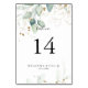 Hochzeit der Eukalyptus-Goldkalligrafie Tischnummer