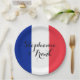 Sie können die Blau-, Weiß- und Rottöne der französischen Fahne anpassen, um Ihre eigenen Hochzeitspapier-Teller zu erstellen. Der Name des Ehepaares weist einen dekorativen, modernen Kalligrafiestil auf. Ändern Sie den Zeilenabstand, um das interkonturierte Aussehen des Skripts zu ändern. Ändern Sie den Stil des Schriftartes, um eine eigene benutzerdefinierte Textnachricht zu erstellen.