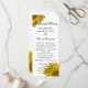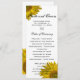 Geben Sie Ihren Gästen die Reihenfolge Ihrer Hochzeitsfeier bei Ihren kommenden Sommer- oder Herbstnuptien mit dem hübschen Sonnenblumen-Hochzeitsprogramm. Passen Sie es mit den persönlichen Namen der Braut und des Bräutigams und spezifischen Einzelheiten der Hochzeitsfeier und der Zeitleiste an. Dieses wunderschöne, individuell gestaltete Zeremonie-Programm mit gelben Sonnenblumen schmückt die Ecken mit weißem Hintergrund.