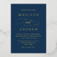 Einfache, klassische Hochzeitseinladung mit Ihren Namen und Hochzeitsdetails in Goldfolienschrift mit Kalligraphie-Schriftzeichen auf marinebasischem Hintergrund. Auf der Rückseite der Goldfolie-Hochzeitseinladung steht ein marineblau-weißes Trellis-Design. Das Design koordiniert mit unserer geliebten Hochzeitskollektion.