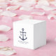 Fügen Sie Ihrer Hochzeit mit dieser klassisch marineblauen Ankerbox eine stilvolle Touch hinzu. Es wurde mit einer marineblauen Ankerillustrierung konzipiert und bietet personalisierte Bräunungs- und Bräutigam-Monogramm, Namen und Hochzeitdatum in einem navy blauen Serif-Schriftart auf weißem Hintergrund. Ideal für Hochzeiten im Wassersport, Hochzeiten am Strand und vieles mehr.