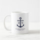 Fügen Sie Ihrer Hochzeit eine stilvolle Touch mit dieser klassisch marineblauen Anker-Gastgeschenk Hochzeit hinzu. Es wurde mit einer marineblauen Ankerillustrierung konzipiert und bietet personalisierte Bräunungs- und Bräutigam-Monogramm, Namen und Hochzeitstermin in einem marineblauen serif-Schriftart. Ideal für Hochzeiten im Wassersport, Hochzeiten am Strand und vieles mehr.