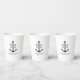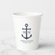 Fügen Sie Ihrer Hochzeit eine stilvolle Touch mit diesem klassisch marineblauen Ankerpapier-Cup hinzu. Es wurde mit einer marineblauen Ankerillustrierung konzipiert und bietet personalisierte Bräunungs- und Bräutigam-Monogramm, Namen und Hochzeitdatum in einem navy blauen Serif-Schriftart auf weißem Hintergrund. Ideal für Hochzeiten im Wassersport, Hochzeiten am Strand und vieles mehr.