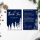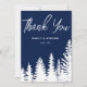 Eine Dankeschön-Karte mit Kiefernbäumen, sanften Schneeakzenten und eleganten Schriftart, die ein gemütliches und raffiniertes Winterwalddesign schafft, das nach einer Winterhochzeit zum Dankeschön einlädt.