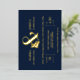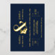 Schöne Blumenfolien-Typografie Hochzeitseinladung in marineblau-goldblauer Folie mit einem großen Blumenampersand und einem symmetrischen Typografie-Design, bedruckt in Goldfolie auf marineblau.