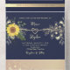 Feiern Sie Ihren großen Tag mit dieser rustikalen Sonnenblume und marineblauen Hochzeitseinladung - perfekt für Hochzeiten im Herbst, Stalllokale und Blumenfeiern. Mit handbemalten gelben Sonnenblumen, eleganten Akzenten der Marine und einem natürlichen rustikalen Hintergrund verbindet dieses Design Charme und Eleganz in einem einfachen Paket. Dieses komfortable All-in-One-Format beinhaltet Ihre Hochzeitsdetails, eine perforierte UAWG-Postkarte und Platz für zusätzliche Informationen. Persönlich mit Ihren Daten, und Sie sind bereit zu gehen! Bitte beachten Sie: Diese Einladung erfordert einen separaten Briefumschlag.