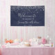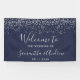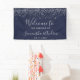 Ein personalisiertes und maßgeschneidertes Hochzeitsbanner, um Ihre Gäste willkommen zu heißen, moderne silberne blauen Konfetti Typografie Hochzeit