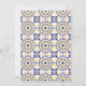 Diese mediterran Inspirierte Hochzeitseinladung mit einem extravaganten und stilvollen spanischen Fliesenhintergrund in Gelb- und Marineblau auf der Kartenrückseite. Auf der Vorderseite, Ihre Namen und Hochzeitsdetails in einem eleganten weißen Schriftart über einem koordinierten blauen Hintergrund. Für Hilfe oder individuelle Anfragen kontaktieren Sie uns bitte über den Shop oder schreiben Sie eine E-Mail an citronelladesign@gmail.com
