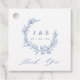 Vintage Blue Floral Wreath Monogram Gastgeschenk Hochzeit Tags mit "Danke" in modernen Kalligraphie Schriftart.
