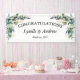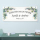 Dieses Sommer Watercolor Floral Wedding Banner ist in weichen blau grünen Eukalyptuszweigen mit goldenen Highlights entworfen. Text beinhaltet: GRATULATIONS, die Braut und Bräutigam Vornamen und Hochzeitstag. Um eine persönliche Note zu erhalten, ersetzen Sie einfach den Beispieltext mit unserer einfachen Vorlage. Schauen Sie sich unbedingt die gesamte Summer Watercolor Wedding Collection an, um passende Karten und Empfang Stationery zu erhalten.