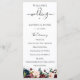 Elegantes Marineblau, bordeauxfarbene und rot-blaue Blume und Blattwerk, Hochzeitsfeier. Das Programm bietet niedlichen kalligraphischen "Hochzeit" Akzent mit mehreren Zeilen für benutzerdefinierte Textlisten für Zeremonie Reihenfolge der Veranstaltungen, Hochzeit Party und danke Ihnen zur Kenntnis.