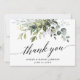 Moderne Kalligraphie Script Elegant Watercolor Botanische Grüne Hochzeit Dankeschön Sie Karte beinhaltet Eukalyptus-Blätter, grünes botanisches Blattwerk, staubblaue Blätter und andere schöne botanische Vegetation.