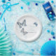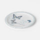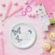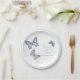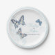 Schöne, mit Tinte gezeichnete Schmetterlinge und blühende Teller aus weißem, bläulichem Papier. Ein modernes, schicker Hochzeitsdesign mit drei Schmetterlingen, einem Frack, einer gemalten Dame und einem Fritillary und ist Teil des kunstvollen Schmetterlings Marineblau, Korallen und Himmelblau Hochzeitsfest Set. Bearbeiten Sie diese Einweg-Teller mit Ihrem eigenen Namen und Ihren eigenen Hochzeitsterminen. Einzigartiges farbiges zeichn und Design von Sarah Trett für www.mylittleeden.com und www.mylittleedenweddings.com