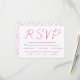 Moderne Skriptkalligrafie magenta rosa und weiß Hochzeit RSVP-Karte. Ein elegantes minimales Hochzeitsdesign mit dem "UAWG" in Skripte calligraly. Auf der Rückseite befindet sich ein fuchsienrosa und weißes Muster Ihrer Namen. Bitte beachten Sie, dass, wenn Ihre Namen auf der Rückseite mehr oder weniger Platz benötigen, diese so anpassen, dass sie die Textgröße entsprechend vergrößern oder verkleinern.