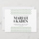 Kleine, waldgrüne Dreiecke über einen weißen Hintergrund machen diese minimale Hochzeitseinladung zum perfekten Einladen Ihrer Gäste zu einer Hochzeit im Freien! Moderne und elegante Schriften behielt diese Einladung einfach und sauber, während die Dreiecke Berge oder Bäume darstellen können. Personalisieren Sie die Einladung, indem Sie ein Foto auf der Rückseite, oder löschen Sie die Foto-Ebene, um eine koordinierende grüne Ebene mit Platz für die Namen der Braut und Bräutigam.