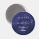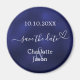 Ein Magnet für Ihre Hochzeitsgäste speichern. Ein marineblauer blauer Hintergrund, weißer Text. Die blaue Farbe ist ungleichmäßig. Die Einrichtung ist mit einem kleinen Herz gestaltet. Personalisieren und fügen Sie Ihre Namen und Hochzeitsdatum.