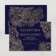 Blumengoldblauer Hochzeitsdetails Empfang elegantes Blumenmuster auf Marineblau. Ideal für elegante, schicke Hochzeiten.