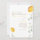 Gelbes Blumenkuchen Foto auf der Rückseite Hochzeitseinladung. Hochzeit im Sommer. Gelber und Goldtext. Botanisch.