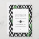 Trendy Hochzeit speichern Sie die Dattelkarte mit den grünen tropischen Blätter des Strandes in einem geometrischen Schwarz-Weiß-Muster