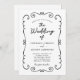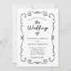Elegante handgezogene Doodle-Grenze mit QR-Code UAWG Schwarz und Weiß Einladung Hochzeit... Ein elegantes, handgezeichnetes Doodle-Design grenzt an Ihren Einladungstext in handgeschriebener Schrift und traditioneller Serifentypografie und verleiht der Karte ein einzigartiges Aussehen für eine einmalige Hochzeitseinladung. Die Rückseite der Einladung zeigt Ihre Hochzeitswebsite URL und auch ein QR-Code Teilnehmer können auf UAWG scannen und alle Einzelheiten der Hochzeit, einschließlich Menüoptionen. Alle Texte, außer dem handgeschriebenen Skript, können leicht mit eigenen Details auf der Personalisierungsvorlage überarbeitet werden.