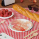 Hochzeit des Korallenpfirsichs mit moderner Aquare Pappteller