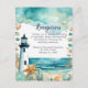 Eine schöne Hochzeitsempfehlung mit einem schwarz-weißen Leuchtturm, Seestern und Muscheln. Ideal für eine Hochzeit. Die Wörter können geändert werden, um Ihre eigenen Angaben oder Anforderungen Anzug